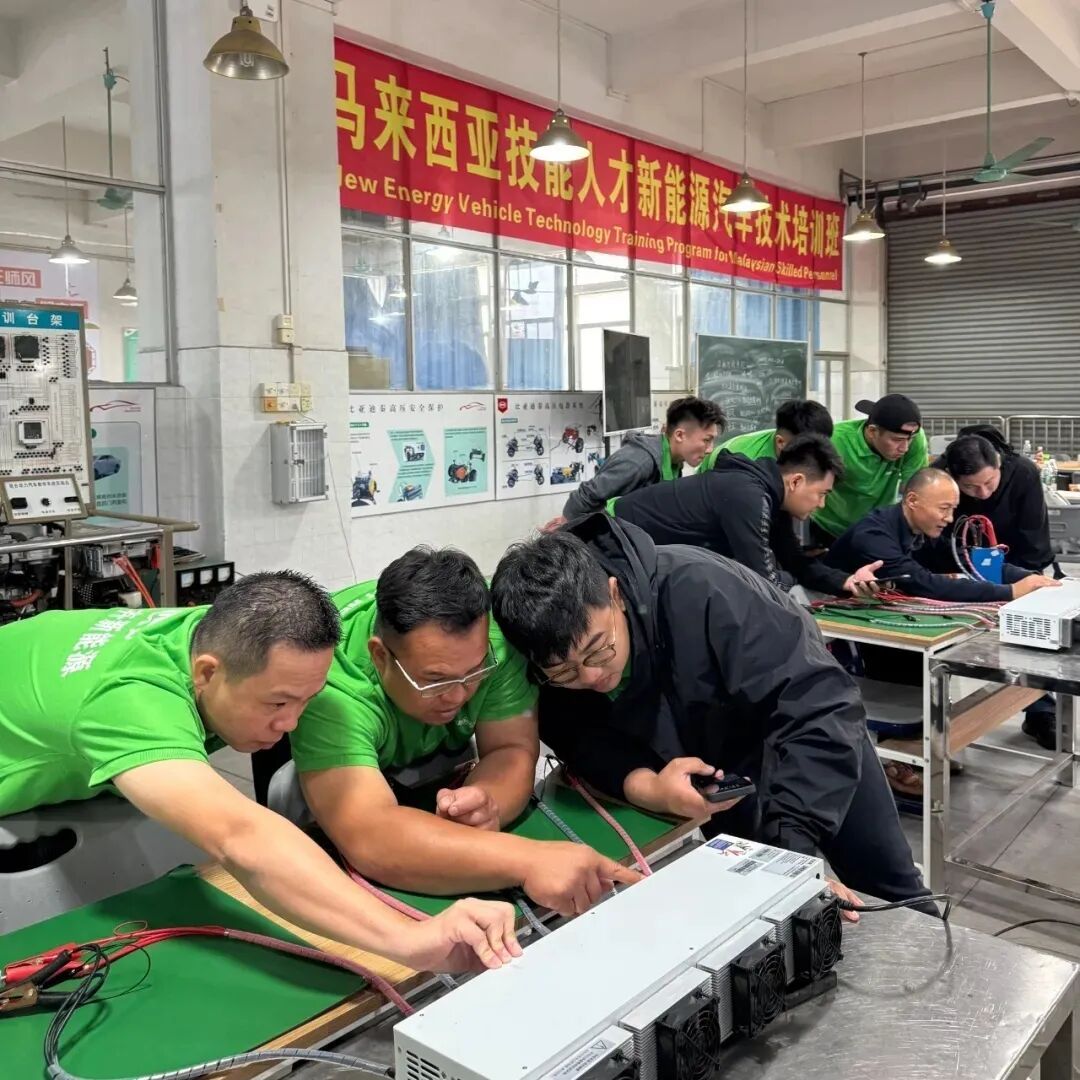 来自马来西亚的学员们全程沉浸式参与,在专业讲师的指导下完成从理论学习到实操演练的闭环。不少学员表示:“培训内容直击维修痛点,无论是高压系统的安全规范,还是核心部件的检测方法,都能直接应用到日常工作中,收获远超预期!”